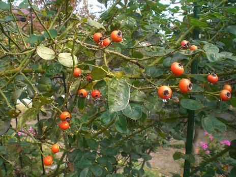 薔薇の実、ローズヒップです。ハーブティーとして売っているローズヒップは、それ専用のローズの実らしいので、庭にある薔薇の実を、ローズヒップと呼んでいいのかどうか分かりませんが。 薔薇に詳しい友人が来て、実を生らせるのは、薔薇の木のために、あまり良くないので、剪定したほうがいい、と剪定の箇所とかを指導してくれました。写真を撮ったあと、きれいに剪定しました。 やってみたいことがあります。どうしても寝付いてくれない小さい子供を、ぐっすり眠らせてしまう方法を、テレビで見ました。 子供の耳のすぐそばに、顔を寄せ、子供の呼吸に合わせて、頭を撫でながら、す~す~と息をするんです。子供の呼吸に合わせるのがポイントのようです。子供の目が、とろ~んとして、やがてまぶたが閉じます。どの子も。可愛い~! これ実験してみたい! やってみたい!母と一つになる、胎内にいるような安らぎがあるのかも。いつか、私に出会ったどこかの赤ちゃん、実験されるかもよ~ ブログランキングに参加しています応援のクリックをよろしくお願いします。