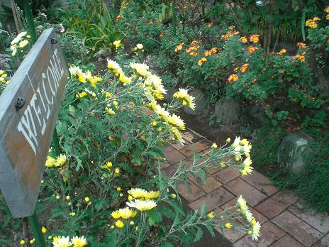 文化の日にぴったりの花、溢れ咲く菊を見てくださいね。ウエルカムボードが立ち、両側を数種の菊で埋めた小道です。 皆さんのところに、この菊の香りが届くといいな。まだまだ種類がありますが、開花にはあと少しです。昨日は、うちにはない二種類を分けてもらいました。さっそくに植え込みましたが、今は覚えていても、来年になれば、何をどこに植えたか、菊は葉っぱがどれも同じなので、これは多すぎるな、と抜いてしまったり、毎年おなじような失敗をしています。 ブログランキングに参加しています応援のクリックをよろしくお願いします。