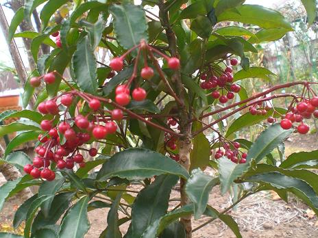 万両の実が、あかあかと灯りをともし、とても綺麗です。 去年のこぼれた種から出た万両が、ここにも、あそこにも育っています。よその和庭にお邪魔したとき、 岩陰のあちらこちらにある万両が素敵で、そのマネをして、残してみてはいるのですが、うちには、立派な和庭の岩もないし、苔もないし、やはり抜きべきか、悩んでいますよ。 私は洋服のお直しの仕事をしていますが、幼稚園のバッグ作りとか、エプロンとか、お祭りの半纏とか、これお直しの仕事じゃないよ~、というような種々雑多な頼まれものをします。どんなものも断りません。引き受けてから、どうすればいいか考える、というアバウトなやり方です。 助かった~、ありがとう~、と言ってもらえたら嬉しいからかもしれませんね。最近、私のブログに、時々登場する五歳のユナちゃんのパパからの依頼で、革のソファクッションに、ホワホワした軟らかい布を被せる仕事がありました。手作り家具を始められたらしいのですが、その一環の仕事とか。数がまとまるそうですが、革か~縫いづらい、この生地、繊維が舞いそう、とか気がすすみません。いままでなら、絶対に無理しても引き受けるのに、とうとう断りました。 なぜか。ここ何日も、風邪で体調がぐずついています。何年ぶりかで、近所のお医者さんにも行きました。そうだ、これよ、体調のせいです。 張り切る気持ちになれなかったのです。やっと回復に向かってきて、食欲もあるので、もう大丈夫なのですが、体が健康でないと、心も弱ります。風邪に対して、もう何年かかっていないと、すごい自信を持っていたのですが、根拠のないもので、意気消沈です。 ゆなちゃんのパパが、せっかく始めた仕事、協力してあげたかったな。悪いことしたな、と気にしています。 ブログランキングに参加しています応援のクリックをよろしくお願いします。