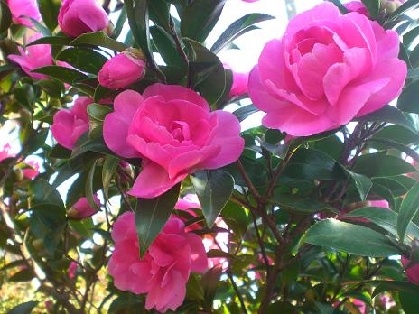 暖かい、というよりも暑いね、今年の十一月。こんなに咲いて、今まで寒椿、と思ってきたけれど、もしかして山茶花?ありふれた花だけれど、こうして写真に切り取ると、綺麗ですね~ 石のテーブルの周りに植えたアイビー、ともう一種類のツタが、テーブルの足元をびっしりと覆っています。空中にびょんびょんと跳ねるように伸びていた枝を全部切り、根元の枯れ葉を取りのぞき、さっぱり。 剪定した枝は、てっぺんのいいところを選び、コップに挿しておきます。家の中で、吊るして眺める観葉植物になります。トイレや、台所に、今までのが吊るしてありますよ。 これ以上増やしても仕方ないのですが、捨てるのがもったいないな、と一応、習慣でコップに挿してしまいました。 ああ、いい天気!明日は、昔からの大切な親友たちに会います。わくわくと楽しみです。今から、娘のところへ出かけて、そこから出発するので、三日間、ブログはお休みします。 皆さまもいい休日を! ブログランキングに参加しています応援のクリックをよろしくお願いします。