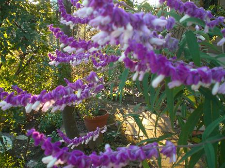 「ピンポ~ン」 「は~い」玄関を開けたら、女性の水道検針員の人が立っていました。手には、アメジストセージの長い茎が・・・・・。「ぶつかって、折ってしまいました。もうしわけありません」と、丁寧に何度も謝ってくれます。 庭にも、裏にも、玄関にも、あちこちに植えているアメジストセージ。もう、刈り取らなければと思っていたところなんですよ。こちらこそ、仕事の邪魔になるような場所に植えていて、ごめんなさい。 長い穂になってしまったのを刈り取っていると、下から、短くて色の濃い花が、また咲いてきています。でも、もう終わりですね。けじめをつけなければ・・・。 また、来年ね。 ブログランキングに参加しています応援のクリックをよろしくお願いします。