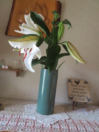 「パイナップルリリーが咲いているの、 写真撮りに来ない?」と電話が。名前は知っているけれど、実物を見たことはあったかな~。さっそくデジカメ持ってお邪魔しました。ウフフ、パイナップルの形ですね~。ユリ科の球根植物だけれど、形が似ているから、「パイナップルリリー」です。小花の集合体です。一つ一つの花は、可愛いですね~。話の流れの中で、「いま、〇〇子が仕事辞めて家に居るからさ」と、娘さんのことを、サラっと言います。踏み込まない方かいいのか、ちょっと迷いましたが、自分から切り出したのだから、いいのかな、と、「え? 仕事辞めたの?」と聞いたら、ハラスメントがあって、もう耐えられない、というので、我慢することない、辞めなさい、と言ったのよ、とのこと。需要の多い職種なので、すぐに就職できるでしょう。だから、それは心配ないのですが、この時代、ハラスメントはダメですよね。〇〇子さんは、テキパキ仕事の出来るタイプ。だから、仕事が出来ないでいじめられる、というのではないのでしょうが、逆に出来過ぎて、というのもあるかも知れないけれど、どっちにしても、人間が人間を侮辱するのはダメ!お前がどれほどの人間だよ、と言ってやりたい。威張る人が大嫌いなので、私、怒ってます。帰ってきたら、玄関のカサブランカが、五輪のうちの三輪が開いて、豪華~。とっても素敵です。思わず微笑みがでました。コロナニュースで胸が不安な中、無理にも口角あげて、にっこり笑いましょう。口角が上がると、脳が、楽しいことがあったと錯覚して、心も平穏になるそうです。 花ブログランキンに参加しています。 応援のクリックをよろしくお願いします。 昨日のアクセス数 2984 昨日のランキング順 6 位