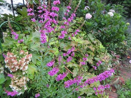ミソハギです。漢字で書くと「禊萩」。お墓や仏壇に供える盆花として知られ、ここらでは、ボンバナという人もいます。亡くなった人への思いから、花言葉は、「愛の悲しみ」ですって。裏腹に、花色が濃いピンク色で可愛いんですよ。雨を含み、重くて頭を垂れている、柏葉アジサイとなにやら話しています。昨日の夕方、山のほうのIさんから、主人が届けますから、と電話があり、プラムとインゲンを頂きました。食べきれないので、あちこちに届けているとか。美味しそう~、有難いわ~。届け先のなかの一軒に入っていて良かったな。プラムをセットして、今日のひとりランチです。十六穀米のご飯、インゲン胡麻味噌和え。鮭のローズマリーオリーブオイルかけ。プラムは、皮を剥いて、丸かじり。果物の酸っぱさが苦手の私ですが、とっても甘くて美味しかったです。茄子の丸ごとレンジ蒸し、ピクルス。ブログ更新中に、ぴんぽ~ん。お隣の奥さんが、おすそ分けと言って、胡瓜とインゲンを持って来てくれました。野菜に困ることがなく、有難いです。 花ブログランキンに参加しています。 応援のクリックをよろしくお願いします。 昨日のアクセス数 2045 昨日のランキング順 6 位