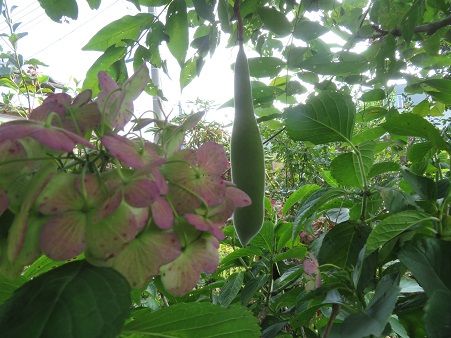 藤のサヤがぶら下がっています。藤の花後は、こんなサヤになるんですよ。マメ科ですからね。晩秋には、茶色く変化して、袋が弾け、種が、音立てて飛び散ります。と云っても、私が音を聞いたことはありません。團伊玖磨さんのエッセイで、書斎で書き物をしていたら、藤の種が、音立てて飛び散り、ビックリした、というのがあり、それ以来、一度聞きたい、と切望していますが、機会に恵まれていません。その樹下では、シュウメイギクの一輪目が。今日も暑いけれど、一陣の涼しい風が吹き、秋も近いな、と感じます。茄子、ズッキーニ、白ゴーヤを頂く。白ゴーヤ、キュウリ、パプリカでピクルス。ズッキーニ、鶏肉、ミニトマトのグラタン。下には、マカロニが入っているので、これが私のランチです。とっても美味しかったです。 花ブログランキンに参加しています。 応援のクリックをよろしくお願いします。 昨日のアクセス数 2365 昨日のランキング順 7 位