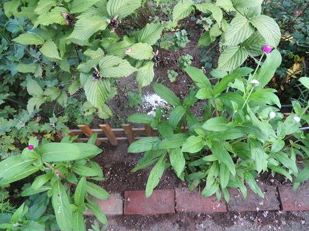 写真奥が白ヤマブキの木。その手前の小さなフェンスと、レンガの間に、100円ショップの千日紅の種の袋が出てきて、今年のではないから、芽は出ないかな、と、出なくても、もともと、と蒔いてみたら、芽が出て、ここまで大きくなりました。見えづらいですが、てっぺんに赤と白の、小さな花房が見えています。千日紅。白ヤマブキの黒い実とお喋り中。白い千日紅も可愛いな。白ヤマブキの黒い実は、存在感があり、絵になる風景を作ってくれています。ツヤツヤとした美しい実です。満開になったら、綺麗だろうな~。庭の紫蘇で、紫蘇味噌を作ってみました。ピーマンと茄子の素揚げにかけたり、豆腐にかけたりして、食べてみました。紫蘇味噌の色が悪いですね~。紫蘇を入れてから煮詰め過ぎでしょうか。また挑戦してみます。昨夜、Iさんから電話。「月曜日に、またお願いします」とのこと。月に一回、うちの近所の医院へ、家族三人で、山の方から診察に見えるのですが、当日の予約ノートに、名前を書いておくと、早く終わるので、朝のゴミ出しのときに、ついでに私が書いてあげています。90歳ごえの認知症のお姑さんが一緒なので、待たせるのが可哀想で、ささやかなボランティアです(笑)。大体 7時半に行くと、5,6番目くらい。でも、先月は、一番だったので、それだけ、医院に来る人が少ないのかも。車二台で来て、Iさんは残って薬を貰い、そのあと、うちへ寄るのが習慣になっています。長くはいませんので、ちょっと寄っていい?と云うので、窓全開、扇風機二台、離れて座る、とどなたが来てもそうしているので、大丈夫よ、と答えました。 花ブログランキンに参加しています。 応援のクリックをよろしくお願いします。 昨日のアクセス数 3190 昨日のランキング順 7 位