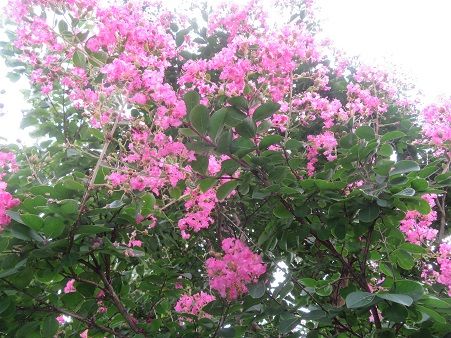 サルスベリが花盛りです。漢字で書けば「百日紅」、ホント百日咲きますね。花びらはチリチリと縮れて、縮緬のよう。英語でもクレイプ(縮緬)何とか、というらしい。大きなサルスベリの木の根元に、ひこばえというのでしょうか、10cmほどの枝が出ていて、地面すれすれに、花を咲かせています。可愛い!毎年、コボレ種で咲く百日草ですが、偏らず、色とりどりに咲くのが感心です。昨日の夕食。ポテトサラダ、豆腐揚げ出しと茄子、大根と生ハム、マグロ刺身。昼食は、そうめんと精進揚げ。息子は、午前中かかって、網戸を張り替え。以前、大きな網戸を張り替えてくれた時に、巻で買った網とゴムが残っていて、トイレ、風呂場、納戸の小さな窓の、網戸を張り替えてくれました。ブルーベリー、今日の収穫。ブルーベリーの牛乳プリン。もう少しいい色を出したいな。色は悪いけれど、味は美味しいです。昔からのお客さんで、いまお直しを持っていく、と電話がありました。85歳くらいのご夫婦で、ご主人の作業ズボンを四本持って来られました。股下○○cmにして下さい、とご主人はしっかり。車で来られたので、足元がおぼつかない奥さんは、車の中で待っていた方がいいのですが、いっしょについて来られました。お見えになるのが分かっていたので、玄関で何となく待っていると、「車の中で待っていなさい」というご主人の声。でも、いうことを聞かず、ご主人につかまるようにして、入って来られます。お二人とも、ちゃんとマスクをしておられます。お預かりしたあと、私が余計なことを、「体調は、大丈夫ですか」と言ってしまいました。それから、話が始まり、三か月入院したこと、ご主人も癌を手術したこと、あ、しまったな、と思いました。その話は、もう何回か聞いているからです。ご主人が、さあ、行くぞ、と言っても、話しています。サッと、ご主人は車へ。多分イライラされたのでしょう。奥さんをお見送りするとき、本当は手をとってあげたかったけれど、接触していいものかどうか迷い、車まで、後ろから付いていくだけにしました。ご主人は何度も頭を下げて、奥さんは呑気に、バイバイと手を振って、出発されました。奥さんは、認知症が始まったとの噂です。私には、まだしかとは分かりませんが、自分を含め、知っている人たちが変化し、年を取るという難しさを感じる今日この頃です。 花ブログランキンに参加しています。 応援のクリックをよろしくお願いします。 昨日のアクセス数 2985 昨日のランキング順 6 位
