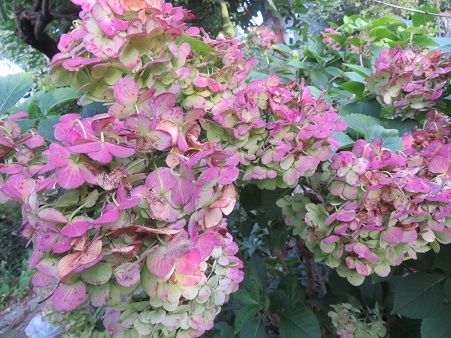 白い紫陽花が、素敵な色になり、樹上で、ドライフラワーになっています。来年の花芽のためには、もう剪定しないといけません。今朝も草取り中に、バナナジュースが。私が作ると、ゴーヤが入るのだけれど、そんな贅沢は言いません(笑)、ただ感謝。綺麗な枝を10本ほど、採集しました。きれ~い!籠に活けたり、天井からぶら下げたり。これは息子がいるときにやらないと、私では届きません。昔は、椅子に乗り、背伸びして、一人で飾ったのですが、今は無理です。もう一束くらい、ぶら下げてもいいですね。紫蘇ジュースのゼリーを作りました。生クリーム乗せて、美味しく頂きました。息子が持ってきたニューヨークタイムズ紙の、Wall of Moms ママの壁 と題された写真。黒人死亡事件への抗議デモで、警察の催涙弾や暴力からデモ隊を守るために、ママには手出し出来ないでしょう、と、女性たちが腕を組み合って、ママの壁を作っています。力強いなあ、女性たち。泣けてきます。 花ブログランキンに参加しています。 応援のクリックをよろしくお願いします。 昨日のアクセス数 2763 昨日のランキング順 6 位