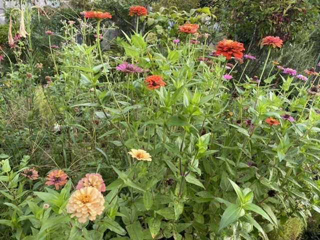 ユウゼンギク。友禅の着物の模様のような。背丈は、せいぜい30センチくらい。古い古い、庭の住人です。旺盛に咲くアメジストセージの下で咲いています。見づらいですが、左中央の地面の塊がユウゼンギクです。アメジストセージは、元気いっぱい。今日は、三週間前から予約していた三人のランチ会でした。楽しみ、楽しみ。お店の玄関横の花壇が、花いっぱいです。一番の楽しみである美味しい小鉢盛り合わせ。飲んべえのAさんのため、酒瓶がずらりならびました。確かに、絶対に日本酒に合う小鉢たちです。お店裏の畑で育てている珍しい野菜の数々。全部が、料理のどこかに料理されています。ひとつひとつ名前を教えてくれますが、忘れました。(笑)マトダイのポワレがメイン料理です。お腹がいっぱいで、軽いものにしよう、と、カボチャプリンを選んだら、上に色々乗っていて、もっとお腹いっぱいに。贅沢で幸せなことです。マスターが、去年の10月7日に、S家でした、サックス演奏者を招いての、ミニミニコンサートを、自分の店でもやってみたい、と言い、(先日の夜、本人が来て、ちょこっと演奏したみたい)、もともとは、Aさんのブロデュースなので、実現に向けて、Aさんが電話連絡したり、盛り上がりました。まだ、メモがわりに書いておきたい事がいっぱいですが、長くなるので、明日にしますね。また、続きを読んでくださいね。 花ブログランキングにいます。 応援のクリックをよろしくお願いします。 昨日のアクセス数 3874 昨日のランキング順 6 位