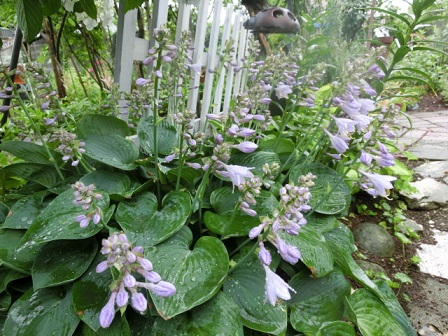 ギボウシ(擬宝珠)。 近頃はホスタと呼ばれることが多いようですね。存在感があり、ところどころにホスタがあると、庭が引き締まるように思います。これは別の場所にあります。どちらも花穂をたくさん立ち上げています。日本特有の花のような感じがしますが、イングリッシュガーデンには欠かせないとか。アメリカでも大人気で、何百種という種類があるようです。「赤毛のアン」の島、プリンスエドワード島の州都シャーロットタウンに、二泊したことがありますが、可愛い建物の玄関先に、ホスタを植えた家が多いのにびっくりしたことがあります。日本の花、と思っていたので。こんなに緑が明るいホスタもありますよ。ツボミが上がってきていますね。こちらは、葉っぱがとても大きいホスタです。 ツボミも大きいね~咲いたら、また見てくださいね。昔からある、一番普通のホスタで、ギボウシと言ったほうが似合うかしら。他にも、葉っぱの小さいのや、花が濃い色のや、数種類が植わっています。それぞれの花期が異なるので、色々植えておくと、一ヶ月は楽しめますよ。 花ブログランキングに参加しています応援のクリックをよろしくお願いします。