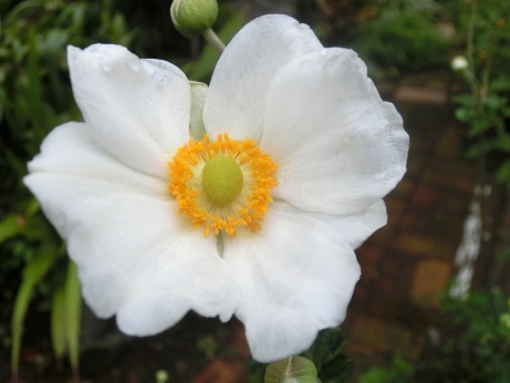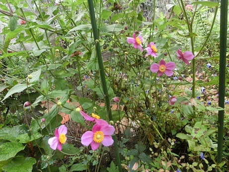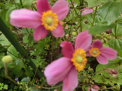 シュウメイギクです。長雨にもへこたれず綺麗に咲いています。