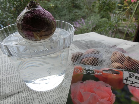 ヒヤシンスの水栽培用、とチューリップの球根も買って来てくれました。