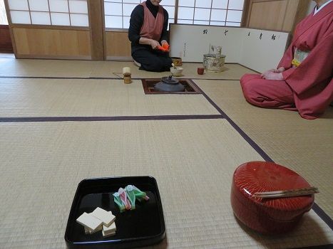 お茶を点てている人の斜め後ろに座り、