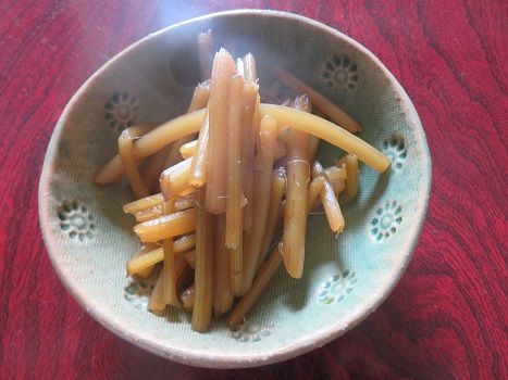 蕗の煮物、しめじと長ネギの味噌汁。
