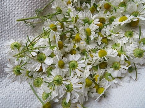 カモミールを摘んでは、生でハーブティを、