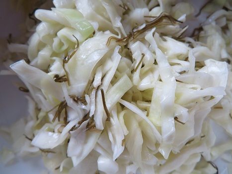 刻んだキャベツを湯通しして、甘酢漬けに。
