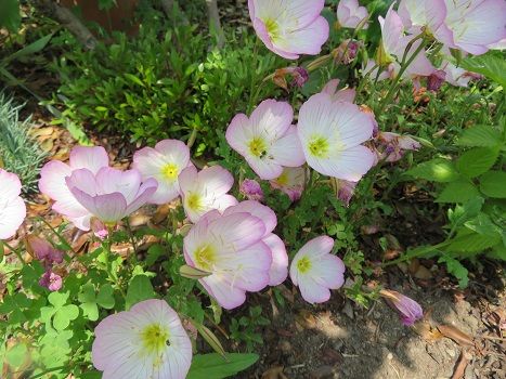 薔薇の足元には、ヒルサキ月見草が群れています。