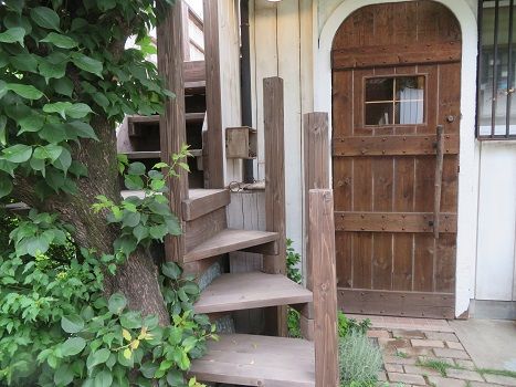 ドアー手前の階段は、ツリーハウスへ続いています。