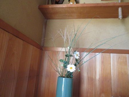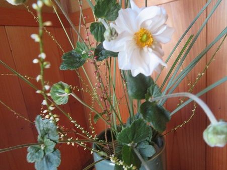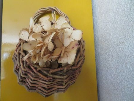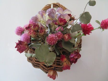 紫陽花、千日紅、ユーカリ、ミニ薔薇で。