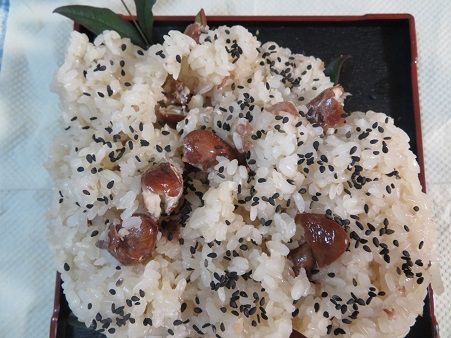 お隣さんから、赤飯を頂きました。