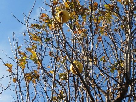 枝に残ったカリンの実が3,4個。