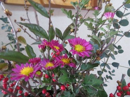 真ん中には、昨日アップしました寒菊を。