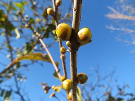 ロウバイの葉がだんだんと落ち、