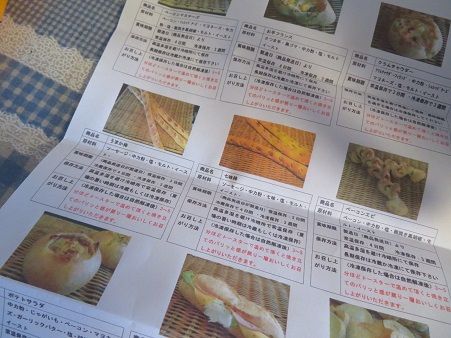 11種類のパン、食べ方がそれぞれ書いてあります。