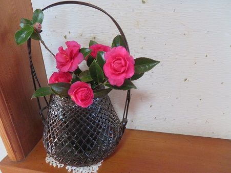 玄関の正面の花を活け替えました。