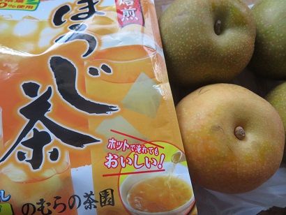 梨とほうじ茶を持って来てくれました。