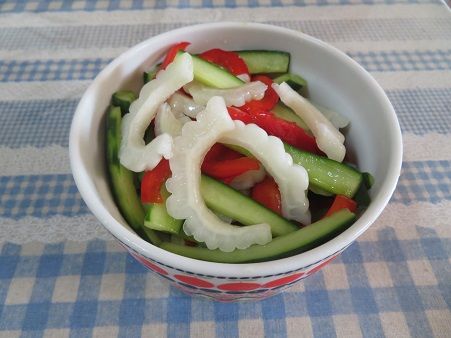 白ゴーヤ、キュウリ、パプリカでピクルス。