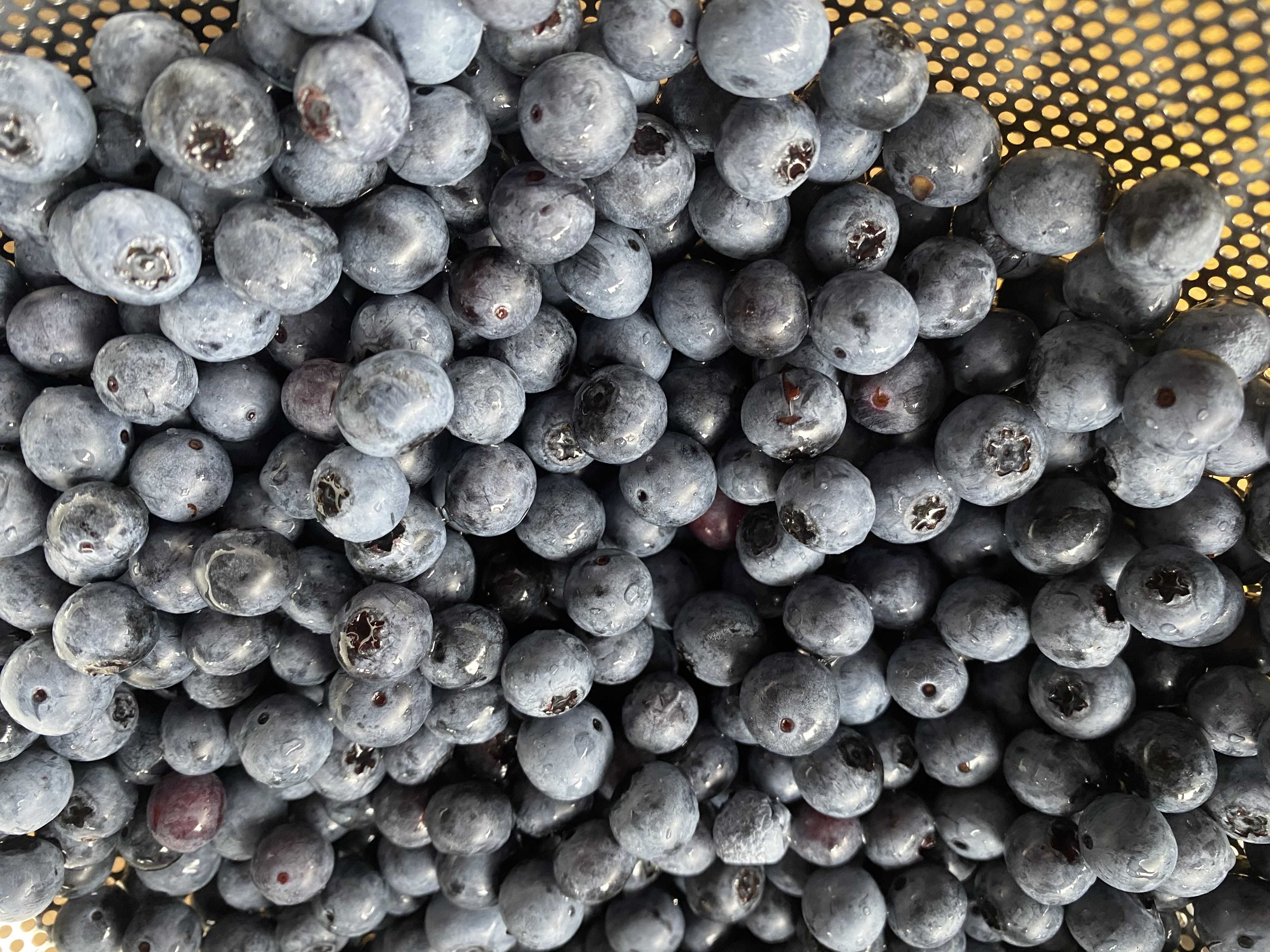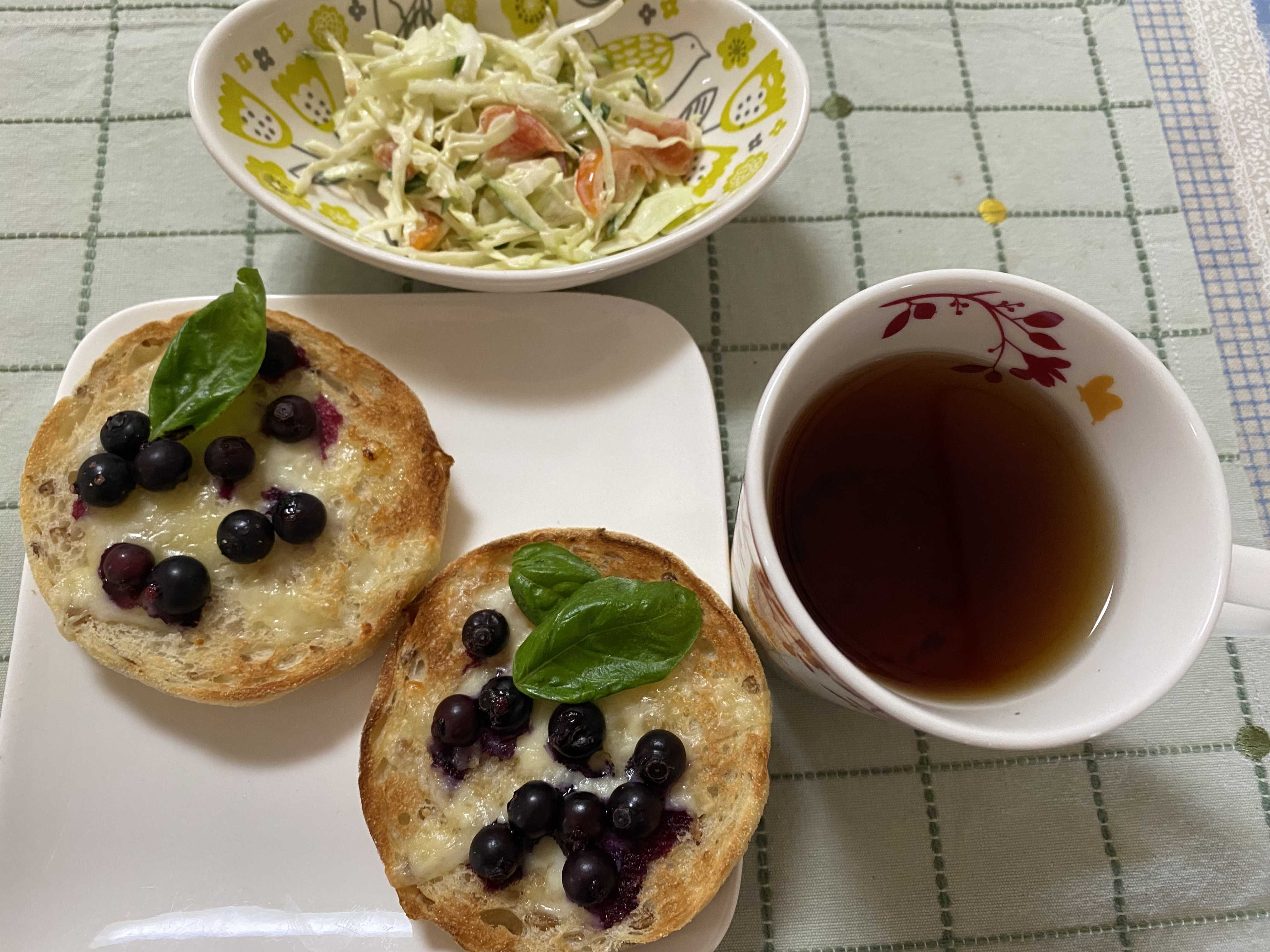 ブルーベリーと溶けるチーズを乗せ、また焼きます。
