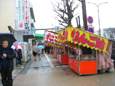 今日は、昨日とうって変わって雨。よく降りましたね~。でも、こんな雨の中、東区にある六所神社のかっちん玉祭りに行ってきました。このお祭り、安産・子供の成長・厄除けを願うお祭りで、へその緒に見立てた飴が売られており、妊婦さんはそれを食べると安産になるらしいのです。たまたま、TVのお昼のニュースでやってて今日だってことを知ったんですよ。安産祈願と聞いちゃ、これは行かにゃ~!ってなわけで、ずんべ君ご夫妻を誘って行ってきました。 歩道にずらりと屋台が並んでてます。端っこに写ってる人は無視してください。(笑)雨なのに結構な人出でした。お天気だったらよかったのにね。飴は屋台で売られてます。サイズは特大・大・中・小。 自分のと、お土産用に3本買いました。これで安産は間違い無しだね♪そうそう、昨日の夜に行ったお店、とっても良かったです。ちゃんと取材してきたから、また後日に紹介しますね~。