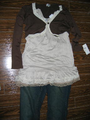 ついに、マタニティを購入しちゃいました。今までは、Aラインやハイウエストのワンピで頑張ってたんだけど、さすがにAラインはパッツンパッツンできつくなってしまいました。昨日の帰りに赤ちゃん本舗で物色。赤ちゃん本舗はマタニティウエアが充実してて、種類が豊富です。安いものしか買わなかったけど、春らしく可愛いのを探しました♪じゃかじゃん! マタニティって、ジャンパースカートやワンピースのイメージが強いけど、パンツもあるのね。お腹の部分がニットになってて伸びる仕組みになっております。今日は早速、茶色いボレロの方を着ました。服が新しいとお出かけしたくなっちゃうわ~。