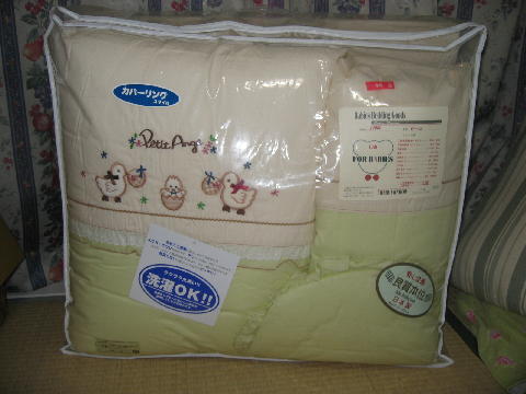 トド助の重たい腰があがって、ようやくベビー用品を買い揃えに行きました。もっと早くに買いに行きたかったのに、今まで何やってたんだろう?近くの西松屋もいいけど、ショッピングセンター内なので店舗が小さい。大きなお店にしようと、赤ちゃんデパート水谷に行ってきました。店舗が大きいので、ベッド、ベビーカー、ハイローチェア、布団などの大型の物も品揃えが豊富です。最初は買うつもりがなかったけど、一応布団を見ておこうと思ったらすご~くお値打ち品を発見!10点セットのウォッシャブルが9800円でした。「値段は安いけど、物は良いですよ」の店員さんの一言で購入決定。色がグリーンなので、男の子でも大丈夫なのも決め手だったかな。他に、オムツバケツ、哺乳瓶、オムツかえシートなどの雑貨を買いました。でも、まだ買うものは沢山あるよ~。懐が寒い毎日であります。
