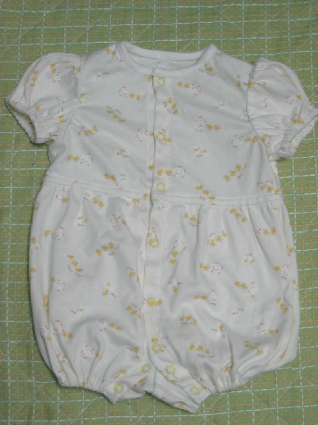 この前のツーウェイドレスの布が余ってたんで、ロンパースに挑戦しました。じゃかじゃん やっぱりボタン付けが面倒だったので、リングホックにしちゃいました。これは、縫い付けるんじゃなくて、金槌でトンカンするだけだから簡単なんですよ。しかも、見た目が可愛いしね♪ちょっとデザインが女の子っぽいかな~。やっぱり、女の子の服は可愛い物が多いのよね。私は男の子が欲しいと思ってたんで、男の子だと分かった時は嬉しかったけど、洋服を選んでる時は、女の子のが良かったかも・・・とちょっとだけ思ったりもします。でも、赤ちゃんだから、ちょっとくらいフリフリのブリブリを着せてもいいよね?