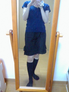 こちら届きましたー。送料コミで1700円!!お買い得☆着回しできるようにブラック購入。早速着画でーす☆カットソーの下に普通に履いてみました。パンツとしても使える(o´ω`o)ぅふふ デニレギは暑いし、真夏はペチパンツ派かも。ワタシ。template-まりもん img-ホットチョコ