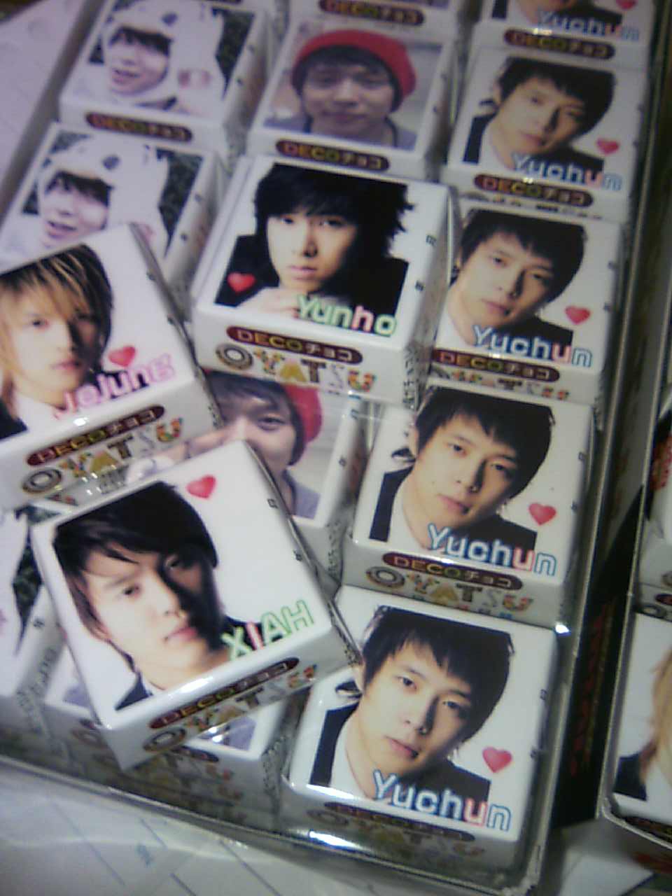 久々のこちらの日記です。東方神起にはまってますが、こんなの作ってみました。DECOチョコと言って、チロルチョコの包み紙に好きな画像を印刷してくれるんですけど、やっぱりこれはトンでしょう??ってことで、作ってみました届いた皆さん喜んでくれるかな~。明日はチャミが届いて。一斉発送です