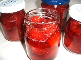 いつも暗い過去の話ばかりでは、さすがに私も滅入ってしまうので時々、手作りお菓子の話題も入れていこうと思います少し前に、苺のババロアケーキを作ったとき、残りの苺はジャムにしようと思って、約1,000gの苺に80%の砂糖とレモン汁少しをかけて、ひと晩置いておきました。(→こちら)次の日に、さっそく火にかけてジャム作り。最近見たレシピに、「フルーツの色と風味を最大限に引き出すには、強めの中火で短時間で煮あげましょう」と書いてありました。ジャムというのは、時間を掛けてコトコト煮るものだと思っていたのですが・・・「ほほぉ~、なるほど!」と思って作っていると、上の娘がやってきたので、レシピに書いてあったことを、話した。「ジャムはね、強めの中火で一気に煮るのが良いんだって♪」「強めの中火?なんか面白い言い方。 それってさ、地震でいうと 『震度5強』 みたいだねぇ」「・・・・・・」ちょうど良いキャニスターが空いてなかったので、アオハタジャムの空き瓶を煮沸消毒して、約4個分出来ました。アクをきちんと取ったので、透明感があり、味もよく、満足な出来上がりでした。我が家は、朝はほとんど和食なのですが、GWはパンでも焼いてジャムを楽しもうと思います。 かえでは苺がきらいで、ジャムは食べてくれないでも、苺のババロアも少し前まで食べられなかったけど、今回のはしっかり食べてくれたから、食わず嫌いかも??連休中に挑戦してみよっと