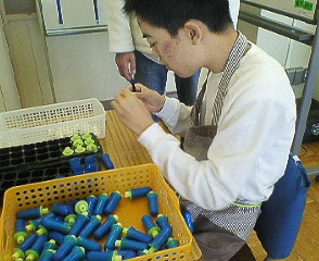 先月のことですが、かえでの参観会に行った時の様子です。生単の時間に、「リサイクルについて学ぼう」という学習をしていました。ゴミを減らすことや、資源を生かしていくことなど、生活に密着した学習です。中学部は少人数なので、みんなで牛乳パックをリサイクルして、ハガキ作りをしていました。牛乳パックを小さく切ったり、水に浸してやわらかくしてフィルムコートをはがしたり、ミキサーに掛けて細かくして、紙漉きをしてはがきの形にしたり・・・いろんな工程があるので、たぶん子供たちもわかりやすいと思います。かえでは、紙を柔らかくしたものをミキサーに掛けて、そのあと紙漉きの道具ではがきの形を作っていました。最後の段階の作業ですね。かえでは、ぶ~~んというモーターの音が嫌いですドライヤー、電気バリカン、掃除機、髭剃り、ハンドミキサー、外に出れば草刈機、周りに茶農家が多いので(なんたって茶どころなんで^_^;)お茶刈機など。実に今まで音に対しては敏感に過ごしてきました。ドライヤーはだいぶ慣れましたが、掃除機はダメで、かえでがいる時には掃除が出来ないです(-_-;)ハンドミキサーもダメなので、お菓子作りの種類も限られます(>_<)お茶のシーズンには、ほとほと苦労しますそれでもかなり慣れてきましたけどね(T_T)えっと、そんなわけでミキサーの音も苦手なんです。紙漉きのときの、ミキサーでガーーーッとやる時間は、約1分その間、他の子はタイマーを使って、1分過ぎるのを待っています。でもかえでは、そばにいることがイヤで、席から離れたがります。ホントは無理やり席に付かせない方がいいんだそうです。自閉症の子は嫌がる環境に無理やり置いておくと、だんだん不安定になるし、パニックになる子もあるので、無理強いは禁物なのですが、一応授業だし、先々の就労のことを考えると、多少苦手な事も、少し頑張らなくてはならないときもありますで、そのミキサーの音が聞こえる1分を、少しでもうまく待てるように、先生が、オセロを使って一分を過ごさせてくれていました。かえでがオセロを全部裏返しにする時間が、ちょうど1分なんだそうです。 こうやって少し離れて(背を向けて)、オセロのコマを裏返しながら、 ミキサーが紙を細かくするのを待ってますミキサーの作業が終わると、中味を紙漉きの枠に入れて、水を切って、乾かすように、並べていました。ひとつひとつのやり方は、雑なところもあるけど、少しの言葉掛けで、かなりスムーズに作業が出来ていました出来上がったハガキは、来月のバザーの時に販売されます。たくさん買ってもらえるといいね♪お母さんがたくさん買っちゃうよ~ 年賀状にも使えるし^^あ、まだ年賀状、買ってなかった・・・(◎o◎)!懇談会のあと、朝の会の時に、かえでが書いている「今日の予定」のボードを見せてもらいました。 これは、一人ずつ見通しがつきやすいように、個々にボードがあります。子供によってわかりやすい方法をとっているようです。家でもこうして利用できるといいなぁと思い、以前試したことがありましたが、学校と違って、日課が決まっているわけではないので、「自由時間」がどうしても多くなってしまい、上手く活用できませんでした学校は学校のやり方で、家では家のやり方で、上手にやっていきたいですね。学校でこうして頑張っている姿を見て、家ではゴロゴロして、まったりの時間も大事だな~と、こんなに大きくなってしまったかえでの頭をなでなでする母でありました(*^。^*)でも、背が高くなってしまったので、母には届かないのだー
