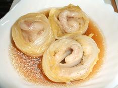 リンクしてくださっているさくらちゃんのブログに、美味しそうな「ロール白菜」のレシピがあったので、作ってみました~(*^。^*) ひき肉でタネを作る事もしなくていいし、白菜と一緒にお肉をマキマキして、コンソメスープで煮て、さくらちゃんは牛乳を入れてミルク煮だったけど、私は、牛乳を醤油に替えて和風にしてみました。美味しかったですこれは冬の定番料理になりそう^^さくらちゃんありがとう♪で、上の娘Rは、せっかく私が一生懸命に巻いたお肉と白菜を、ほどいて食べるのです・・・(-_-;)巻いてあるところが売り物なのに、ほどいたらロール白菜の意味が無いでしょうがほどいて長いままズルズルと食べてます・・・(-_-;)「せっかく巻いたのにぃ!」と言うと、「どうやって巻いてあるか、ほどいてみたかった」だと。まあいいけど、ヘンなやつ。 さて、今年も アップルパイ の季節です紅玉を買ってきたので、土曜日から日曜日に作ってみました。まずりんごを切って砂糖とレモン汁と一緒に煮ます。皮付きのまま煮ると、きれいなローズのような色になるんですよ~^^ 冷めたら、ラム酒を少し。こうして冷蔵庫で一晩置きまして・・・今日も冷凍パイシートです。伸ばして型に敷き込み・・・前夜に煮たりんごをたっぷりとのせて、 上にもポピュラーにパイ生地を編み編み込んだものをのせて、 焼きます! できあがり~~(^_^)v 全部で3つできました^^アツアツがおいしいのよね~でも私は猫舌なので、少し冷めてから^^またしても上の娘R、せっかく編み込んできれいに仕上がったパイを剥がしながら食べてます・・・(-_-;)これこそ、一緒に食べてもらいたいのにぃ・・・<`ヘ´>「なんでそうやって剥がすの?もっと美味しそうに食べてよ」と言うと、「どうやって編んだのか探ってた。 だってお母さん編み込みって下手じゃん」さらに「パイって層になってるからさぁ、何層になってるか調べてた」そんでもって、急に 「あっそーだ!すごいことあった!」 と言うので、何かと思ったら、娘の通う高校でも、今話題になってる「必修漏れ」があったらしい。「情報」の時間が別の教科に回されてたみたいで、12月から補う授業が始まるそうです。大きな漏れではなかったから、生徒の負担は少ないみたいだけど、校長先生まで自殺に追い込まれるような制度自体に問題があるように感じますね・・・「進学校で唯一必修漏れのない学校とか何とか言ってたけど、 やっぱ流行に乗り遅れちゃぁいかんしね~」 だと何でもかんでも分解したがる女は、日曜日になると例のトカゲちゃん("なめろう"と命名^_^;)を日光浴させてます(T_T)そんでもって、餌のコオロギ。また無くなっちゃったので、ネットで注文したそうで昨日届いたの・・・私は何が入ってるかわからなかったので、その辺に置いといたら、なんかガサガサ音がする。そのうちに「リリリリリ・・・・コロコロコロ・・・」とどこからともなく虫の音が・・・うわ~~~ん!今度のコオロギは生きてますーーー\(◎o◎)/!帰宅した娘に聞いたら、「これからコオロギを育てて増やす。 そうすればもう注文しなくてもいいし~」 だとぉ!あ~、もうイヤァ~~勉強してくれよ~