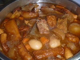 なんとなく、名古屋びいきな我が家。大都会でもなく、一番近づきやすい微妙な都会だから?(笑)夫は、昔、名古屋に住んでいたこともあり、というか、東京にも住んでたらしい。それも新宿だって。いまだに、武勇伝になっている(爆) プロ野球は、中日ドラゴンズ大好きだし、サッカーは・・・あ、これはもちろん地元を応援してるけど、ラーメンも、やたら味噌が好きだし、初めてデートで遠出したのは、名古屋の東山動物園だったし・・・(≧∇≦)まあ、そんなわけで、なにかあると、すぐ「名古屋」なんですよ。 で、なぜか娘たちも、名古屋が好きで、って、親の影響ってすごいですね(^_^;)まあ、このフラッシュを見てやってください。 名古屋はええよ!やっとかめ なんか、名古屋ってすごいぞ!みたいな歌です(爆)東京や大阪の方に怒られそうですが( ̄▽ ̄;)近い将来、名古屋が日本の首都になるらしいですよ^^「やっとかめ」っていうのは、名古屋弁で、「お久しぶり」って意味ね。ずいぶん前に、林檎が見つけてきたんだけど、聴くたびに笑ってました。 この歌にも出てくるけど、名古屋といえば、味噌煮込み。今日は土曜日だけど、寒い中、遅番で休日出勤している夫のために味噌煮込みおでんを作りました。(夫のためにというのは、ウソです(笑) 私が食べたかったので♪)田楽のように、甘辛味噌を付けて食べるのではなく、赤みそで煮込んだおでんなのだよ^^年に1~2回は作ります。わーい♪やっとかめ~な、味噌煮込みおでん~~\(^o^)/ 今日の具は、大根、里芋、人参、こんにゃく、厚揚げ、玉子、練り物いろいろ、スペアリブ、ゆでモツ・・などなど。で、すっごいたくさん作ったので、今夜食べて、また次の日に具を足して、3~4日はおでんが続きます( ̄¬ ̄*)一晩、置いておくと、さらに味がしみ込んで美味しいのよね^^これ、しぞーかおでんとは違うけど、黒はんぺんも入れてます。もっと煮込むと、全部、真っ黒になるので、何の具か、わからなくなっちゃうくらい。でも、色のわりに、味は濃すぎず。 んでもって、ねりからしではなく、一味・七味とうがらしを振って食べるのが旨いだよ~~というわけで、おでん大好きなメイプル家でした( ´ ▽ ` )ノ ◆◇◆◇◆◇◆◇◆◇ おでんとは無関係な話ですが、あ~あ、洗濯機がヤバいことになっちゃったよー(-_-;)なのであります。底の回転する丸い部分が、取れちゃいました!心棒のネジの山が擦り減ってしまったようで、ネジを絞めても空回りしてしまって、最後の脱水をする時に、外れちゃったんですよ~(;´Д`)前々から、怪しい兆候はあったんですけどね。まだ普通に使えていたので、しばらく大丈夫かな?と思っていたら、いきなり!でしたねえ。近くの電気屋さんに見てもらったら、底の部分を取り換えればOKだそうで、取り寄せて、届くのが月曜日になっちゃうらしい。 うーん・・・明日は、コインランドリーです(o ̄∇ ̄)o!! 今日は、最後の脱水の代わりに、手動脱水(手でひとつずつ絞っていた)をやっていたので、少し前から、微妙に違和感があった左肩が、今日は顕著に激痛です(>_<) あ、これってもしかして・・・五十肩っすか?・・・(||゚Д゚)ヒィィィ! ヤダァ!