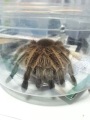 2月も3日になりまして、今日は節分、明日は立春。恵方巻き、今年はスーパーで予約しちゃいました(^_^;)穴子がドーンと入ってるのと、ちょっとデラックスな海鮮巻き♪でも、デラックスなのは、丸かぶりが無理なので、最初からカットしてしまったぁ。ご利益なさそう・・ その後は、恒例の豆まき。かえでが張り切って撒いてくれたけど、またすごいたくさん握ってばら撒いたので、拾うのが大変だったぁ(;´Д`)ノ年に一度だけど、豆まきの要領はわかるようになりました^^さすが、22歳です(笑) *********************さて、最近静かだった上の娘の林檎・・・先週末、しぞ―かで開催されていた、爬虫類大集合みたいなイベントに行っていたらしく・・・(-_-;)あ、レプタイルズショーっていうらしいです。まあ、こういうの大好きな人なので、テレビCMを見た時、きっと行くだろうな・・と思ってはいたけど。 そこであるものを買ってきた(@_@;)勤め先では、実験用マウスを扱っているため、ヘンな菌を持ちこんで、マウスに感染させてはいけないので、自宅で両生類以上のペットは飼っちゃいけないそうで、もう、以前のようにトカゲちゃんは飼えないんです。ってことは、魚類や昆虫はオッケーなわけで・・・(;´Д`) お正月に来た時にも、チラッと言っていたけど、まさか、ほんとに買ってくるとは・・・!というわけで、今度はこれだあ!!! 大きい画像はちょっと・・・ね(でも、クリックすると大きくなります)これ、タランチュラだそうですローズヘアータランチュラ、っていうらしく、バハムート・・と命名したとか。いくら昆虫ならいいと言っても、なんでまた、こういうのを・・・あ、クモは昆虫じゃないか。 右端にいるのは、エサの小さいイモムシで、これにビビっているところ・・だそうです。タランチュラって、毒があってすごい怖いイメージなんだけど、大丈夫なのか聞いてみたら、これは大人しい種類だから大丈夫だと言っている。頼むから、きちんとしっかり管理してよおおおおーーーーっ!と、半泣き状態の私でありますぅ(;O;)なんか別の意味で、心配掛けてくれる娘だ・・・まあ、私はこのハムちゃんとは同居してないからいいけど、一緒に暮らしていたら、とても生きた心地がしないだろうな。はぅ~~