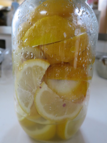 さて、またまた新しいことを始めました(笑)“塩レモン”・・・です。先日、某サイトで、塩レモンなるものを初めて知りました。“香りの調味料”だそうで、いろんなレシピも豊富だし、これからの季節、さわやかな酸味とクエン酸効果で、疲労回復にもよかろうと思いまして・・幸いにも、いつも行くスーパーには、国産レモンが豊富に置かれています。流行りとはいえ、ここで4~5個買うのは問題ないでしょう。というわけで、作ってみました。 作るといっても、カットしたレモンと塩を、交互に詰めて、一ヶ月くらい置くだけ~~です。すぐにレモンから汁がどんどん出てきたので、これは面白いかも。一ヶ月置くことで、塩辛さが取れて、マイルドな味になっていくらしいです^^ 一応、毎日瓶をフリフリするらしいですが、酵母を仕込んでいる時も、梅シロップの時も、毎日フリフリするのは日課なので、そのへんは大丈夫♪瓶に詰めてるのを見た夫が、「また何かやってる」と、呆れた顔で言っていましたが(笑)ほんと、あんたも好きねえって感じ( ´艸`)まあ、以前に作って使っていた塩麹は、夫が好きじゃなかったので、お肉や魚を麹漬けしたのを出しても、不評だったもんだから、レモンならいいかな?と思いまして。早く使ってみたいな~~ ***************** 今日は午前中 雨が降っていたので、夫もおじいちゃんもお休みです。朝からのんびり~~・・でした。なんか、日曜日にみんないるのって、すごく久々な気がする。みんないるせいか、息子もえらく穏やかで(笑)てか、私と二人っきりの時って、いつ息子が向かってくるかわからなくて、私はいつも緊張して、構えているような状態なので、ちっとも気が抜けずに、すんごい疲れるんですよ(;´Д`)でも今日は、そういう心配がいらないってだけで、すごく気楽です(^_^;)さてさて、今週はお天気がよければ、毎日お茶刈りの予定。がんばりましょう~~((+_+))