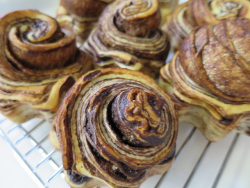 牛乳、卵黄、砂糖、小麦粉、ココアパウダー、バターを混ぜて、チョコ風味のシートを作って、それをパン生地に折り込んで・・フラワー型に入れて、巻き貝のようなパンを焼いてみました♪ たぶん、生地の真ん中がびよーんを上がってくるだろうなと、予想した通りいや、予想以上に びよーん・・でしたが(≧∇≦) 《記録》中力粉300砂糖30塩5スキムミルク6玉子30水125バター30イースト6ぬるま湯309分割 180℃ 15分****************最近・・息子がちょっと不安定で・・という話は、いつも書いているんですが、自傷も多いし、私にも向かってくるしで、送迎はおじいちゃんに頼んだりしています(^_^;)まあ、私もいろいろ切ないんですが、どうしようもないし、施設の職員さんも心配してくださって、いろいろと策を講じてくださったり・・今は、息子が一番安心できる生活を・・と思っています。 そんな中、どうも日々の作業がはかどらないことが多い・・と、連絡ノートに書かれていたので、今日は、作業の様子を参観しに行ってきました。 いつも、自分の顔を殴っていたり、ぼんやりして、手に持った道具をいじっていたり、声をかけると、その時だけは手を動かすけど、またぼんやりしていたり・・という感じで、みんなが作業を終えても、息子だけ、“残業”しているらしい。今まで、作業だけは頑張れるのが、とりえみたいな感じもあったので、作業もできないとなると、ちょっと重症だなぁ・・と心配していました。 今日はお天気が悪かったので、雨が当たらないところで缶つぶしをやっていました。ぼんやりとやる気がなさそうな息子を見るのは、正直、ちょっと辛いな・・と思っていたんですが、なんのなんの(笑)まあ、いつもよりはペースが落ちていたけど、それでも、力強く缶つぶしの作業をしていました^^職員さんが、「今日はいい感じです」と。私がいるのがわかったから・・かな?(こっそりと柱の陰から見ていたのに)ちょこっとの刺激って、起爆剤になったりするものね(^_^;)息子にとっては、何より安定した生活が一番!とはいえ、いい意味での刺激を見つけられたら・・と思うのだけど、裏目に出る可能性もあるし・・賭けみたいな気分です。でも、元気に作業している姿が見られてよかった~(*´▽`*)ちょっとホッとしました。*****************こないだ採ってきた梅。梅干しにするのは、完熟してる方がいいので、もう少し置いて、追熟させてるんですが・・だいぶいい色になってきました^^明日は塩漬けするぞ~~\(^o^)/てか、その辺にあると邪魔なので早く片付けたい(笑)