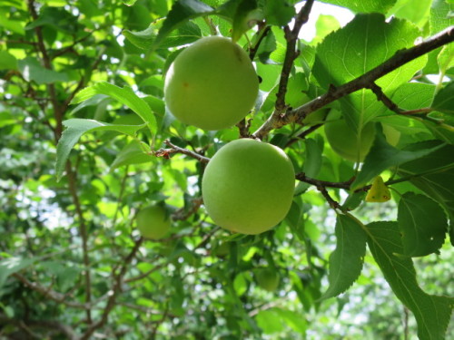 梅雨入り間近・・今日も暑かったですぅ梅雨といえば、梅・・ということで、夫の実家の山に、梅の実を採りに行ってきました。すっごい高い場所にある急斜面のところに、梅の木が何本かあって、その一本は、どんだけでも採っていいらしい。 たくさん生ってます~~\(^o^)/高い所の枝には、もちろん手が届かず・・夫が枝を切ってくれたので、私は、そこから実を採っていました(^_^;) バケツに2杯くらいあって、すっごくたくさん収穫♪梅酒、梅干し、梅シロップ、梅ジャム・・いろいろ作りたいなあ( ̄¬ ̄*)梅干し用には、少し追熟させてから・・ですね。戻ってくると、義母が、「じゃがいもも掘っておいで」と、鍬を貸してくれたので・・市場に出す分もあるから、我が家の分は2株だけ掘りましたが、それでもすっごく大きいのがいっぱいあって、重宝しますわ~~♪これは、夫が田植え機で植えた田んぼ(笑)性格が出てますね。まっすぐじゃない(笑)そのほか、夫が種まきして育てた苗、夏野菜いろいろを植えてある畑(もともとは田んぼ)とうもろこし、かぼちゃ、トマト、きゅうり、すいか、いんげん、なす、ピーマン・・すいかの赤ちゃん。どれも実が付き始めていて、これが一斉に採れ始めたら・・・( ̄_ ̄ i)もかしたら、お給料が、現物支給になるかも・・それだけは勘弁して~~と思います(マジで)帰りに、某神社へ寄って、同じ敷地内にある、菖蒲園を観てきました^^色とりどりの花菖蒲。瑞々しくて、きれいでした。あやめ、菖蒲、カキツバタ・・区別がつかないですが(^_^;)そして、なんちゃら横町で、去年の夏、食べたくても混んでいて食べられずじまいだった、フルーツかき氷?を食べてきました。イチゴの果肉・・というか、果肉たっぷりのジャムとミルクがたっぷり。かき氷って、あんまり食べられないんだけど、これはよかったです♪美味しかった~~(*´▽`*)というわけで、暑い中を動き回っていたら、頭が痛くなってきちゃって~~かき氷のせい? キィーーーン
