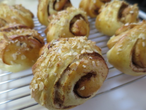 いつもお世話になっている、支援センターのヘルパー・落合さんが、強度行動障害の研修会で、息子のことを事例発表する・・と聞いていたので、私も聴きに行ってみたいなあ・・と思っていたんですが、一般の人は入れないようで・・(;´Д`)親なのに(笑)残念に思っていたら、なんと!息子の通所施設のケース担当のFさんが参加された・・とのこと。なんで、落合さんは名前を出していて、Fさんはイニシャルなのか(笑)なんでだろう?ま、それは置いといて、Fさんにも、“センスいい”人たちの事例発表を参考にしていただけたら・・と思って、(なんかすごい失礼な言い方ですね)落合さんが息子のことを事例発表することを簡単にお知らせしてはいたんですが、まさか、本当に行ってくださるとは!息子がボウリングを楽しみにできるようになるまでの支援過程を聴けたそうで、「本当に、事前に彼への提示が大切だということ、 あらためて確認できました。」と、連絡ノートに書いてあったのを読んで、私がずっと言ってきたことが、わかりやすい事例発表で、やっと理解していただけたのかも(^_^;)いかに、落合さんがわかりやすく発表してくださったのか、とてもありがたく思いました。てか、私が言ってきたのは、わかりにくかったのか?(笑)まあ、毎日息子を見ていれば、なにが足りないのか、なにが大切なのか、すぐにわかると思うのだけど、そのへんが、センスがあるかどうか・・ってことなのかも。そういう私も、センスないので、こうして23年も付き合っている息子限定ですけどね(^_^;)「まだまだ日中活動の場と、 センターとの情報共有ができていないことも実感しました。 彼が過ごしやすい場ができるように、努力していきたいと思います。」と結んでありました。同じ地域で、同じ福祉に関する業界で、障害のある人たちが、共通して利用している施設間であっても、職員さんが、共通理解していないのは、とても残念なことだし、もったいない。施設同士、連絡報告会とかあるらしいけど、活かされてないのは、本当にもったいないですしね。とにかく、今日の連絡ノートは、うれしかったです^^******************* さてさて、昨日と今日は、秋のパン祭り・・ではないですが(笑)パン屋さんをやっておりました。焼いて、冷まして、焼いて、冷まして、ラッピング、ラッピング、ラッピング・・と、全部で7~8種類、焼きまくり、お祭りみたいな感じでした~\(^o^)/なんか、相変わらずおっちょこちょい・・というか、うっかりミスとか、あちゃー!なことをいっぱいやってしまい、いろいろやり直しが多かったけど、それでも、心を込めて作ったパンは、とっても愛しく感じて、ほんとに、嫁に出すような気持ち・・かわいがってもらうんだよ~~(゚ーÅ) 今日のパン(の一部)シナモンロール♪かもめ食堂風に作ってみました^^