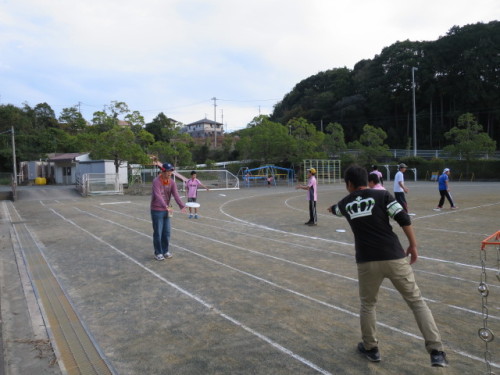 今日は、トランポリンのK先生のご紹介で、フライングディスクをやりに、懐かしの息子の母校(支援学校)へ行ってきました。昨夜、明日の予定を拙い単語を並べて聞いてくる息子に、「あした、がっこうで、フライングディスクを、やるよ」と、ディスクを投げる真似をして伝えると、「学校」のワードに、目を丸くして「がっこ?」と聞き返してきましたが、すぐに納得できたようで、今日はすんなりと「がっこ」へ行くことができました(^_^;)私も初めてなので、どんな様子かわからず、K先生にしつこくメールで伺ってしまいましたが、K先生、メールの返信が遅いうえに、私が質問している肝心な部分のお返事がなく、「かえでくんが楽しんでくれればうれしいです」とか、そういう内容だったりするので、息子の思いを大事にしてくださるのは、大変ありがたいことだけど、始まるまで、なにかと心配でした。が、今日はヘルパーさんとお願いしてあったので、息子と二人きりで行く心配をせずに済むのは、心強かったです(^_^;)集まったのは9人で、住んでいるところも、年齢も、みんな違う、知らない子ばかり。でも、みんな支援学校繋がりです。在校生もいれば、卒業生も。というわけで、ゆるゆると始まりました。ディスクを使って体操をしたり、キャッチディスク(2人組でキャッチボール的な)などなど。 息子はヘルパーの落合さんと組んで、投げたり受けたり。久しぶりだったけど、やり始めて、だんだんと勘が戻ったのか、投げるのも受けるのも、いい感じにできてきました。次に、こんな形↓のものに、ディスクを投げて入れる競技。鎖に鈴がたくさんついていて、ディスクが当たると、鈴が鳴ります。鎖に当たったディスクは、下のかごに落ちて、ポイントになる・・というものです。3回投げて、全部入ったら終わり。その後、グランドゴルフみたいに、遠くに置いたこれを的にして、何投で入れられるか・・を競うものをやったり。ディスタンス(投げて距離を競う)とかも。フライングディスクと言えば、わかふじ大会でやった、あの丸いフラフープみたいなところを通過させるのしか知らなかったけど、いろんなやり方があるんだなとビックリ。どれも、ルールがわかりさえすれば、そして、コツがつかめさえすれば、息子にも充分楽しめるスポーツでした。 が(笑)ゆるゆるやっているので、待ち時間や休憩時間が長すぎて、ちょっと退屈だったかな。スカッと発散系な感じはなく、達成感、満足感という点では、いまいちだったような?最近、どうも肉付きがよくなってきた息子なので、やっぱり走ろう会みたいなのがあったらなあ・・(私は大変だけど)しかし、全部で2時間という長丁場を、特に困らせることもなく、グラウンドでみんなと一緒に居られるなんて、それだけでもすごい・・と、落合さんと感心して帰りました。学校時代、集団で過ごすことで、いろんな力がついたこと、これは本当にありがたいことです。私にはやってあげられないことだし。今日は一緒に参加していた、支援学校の中学部の男の子3人が、すごく面白くてかわいくて、なんだか、すごく癒されました( ´艸`)次回は、来年1月らしいので、また参加してみたいと思います。