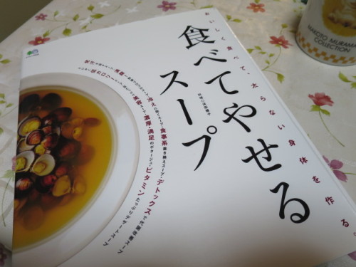 またまた朝から雨でしたので、夫はお仕事がお休みでした~( ̄∇ ̄;)今日はおじいちゃんが診察の日で、主治医と今後のこと(手術するかどうか)を相談することになっていたので、私も一緒に行くつもりでいましたが、一人で行けるから大丈夫だと、私が付いていくのをうるさそうにしていたもんだから、じゃあ、私は行くのやめることに。 となると、ヒマそうな夫と二人で過ごすわけで・・(-_-;)夫が、「ヒマだから、どっか行くか」と言ってきたけど、雨じゃあねえ・・というわけで、特に欲しいものもないけど、一緒に買い物に出掛けました。夫が寄ったのは、ブッ〇オフ。欲しい文庫が見当たらず、何も買わなかったみたいですが、私は、料理本のコーナーで、これ↓を見つけて買いました^^(108円也)具だくさんの汁物が大好きな私♪108円で、いつもの汁物が、ワンランクアップできればいいな~そして、さらに痩せたらラッキーだよね~って、軽い気持ち( ´艸`)でも、帰ってからよく見てみると、私は好きでも、家族に不評そうなものとか、けっこう多くて、作りたくなるようなスープがあんまりなかった(;´Д`)この本を最初に買って、ここへ売った人、痩せたのかなあ?(笑)成果があったんだろうか?(^_^;)ぜひお聞きしてみたい。