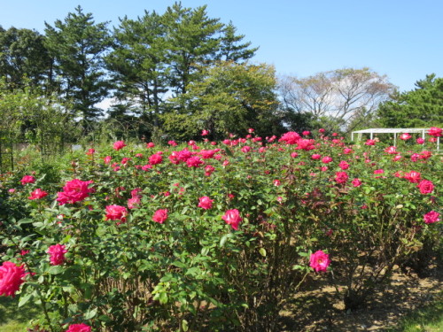 今日、第3土曜日は、トランポリンの日ですが、インストラクターさんの都合でお休みになったので、お願いしてあったヘルパーさんをお断りせずに、私と息子のお出掛けに付き添っていただきました^^トランポリンのためにお願いしていた利用希望の時間は、13~16時でしたが、午前中から空いているとのことで、お弁当を持ってお出掛けすることに。 行き先は、某フラワーパーク。車で40~50分くらい。私の運転です。最初、お出掛け先をどこにしようか、あれこれ迷っていたんですが、歩き回るだけになりそうな場所しか思い浮かばず(笑)ただ歩き回るだけなら、お花がたくさん見れる場所がいいなあ・・なんて、私の行きたい場所優先にしちゃいましたが、これが大正解♪行楽シーズンで混んでるかと思いきや、すごく空いていて、すれ違う人もまばら。息子がちょっとくらい、大声を出しても、ちっとも気にならないし、勢いよく走りだしても、誰にもぶつからない。私たちにとっては、とっても気楽でした。風もなく、お天気もいいし(てか暑い)秋のバラはいっぱい咲いているし(これが私の目的)ヘルパーさん(女性)「こんなに楽しませていただいて、申し訳ないです」なんて言っていたけど、私と息子の二人で出掛けるのが大変なので、その支援ということだから、ちっとも申し訳なくないんです^^私も話し相手がいるのは嬉しいし、3人で、ローズガーデンを中心に、あちこち見て回って、途中でお弁当を食べたり、噴水の前でのんびりしたり・・ この噴水の前で、息子はとても楽しそうに歩き回っていました。時々、ミストを浴びたりして、気持ちよかった。 いつも、夫が一緒のお出掛けだと、夫の手をギューギュー握っていて、なんとなく不安そうにしている息子。ギューギュー手を握られているのが苦痛で、だんだんと不機嫌になる夫。これが大変で、なんとなく出掛けるのも躊躇してしまう私。でも今日は、こんな3人での初めてのお出掛けで、多少の不安もあるだろうに、ほとんど手繋ぎをせず、ひとりでブラブラ歩きながら楽しめているのを見て、何が安心材料になっているんだろう?と思いました。たぶん、私が、リラックスできていたせいかもしれないです(^_^;)不機嫌になりそうな夫の顔色を見て気にしている私は、きっと怖い顔をしているのかもしれない(笑)私がリラックスして気持ちいいと、息子も気持ちいいんだろうな。そして、私はバラの香りに癒されました(*´▽`*)ほんと、お出掛けできてよかった。まだ、鼻の奥の方で、このバラの香りがしているような感じです。脳に入り込んでるみたいな(笑) ハロウィンのディスプレイも賑やか。 十月桜・・なんていうのもあるんですね。小ぶりのかわいい桜が咲いていました。たくさん歩いて疲れましたが、息子は元気いっぱいです。夫は週末の休みがあてにならないので、これから、こんな感じのお出掛けをどんどん取り入れて、もっと外の空気を吸わせてあげようと思います。************ 今朝早く、友達からのリクエストで、毎度おなじみの、バラみたいなアップルパイを焼きました。喜んでいただけてよかった~