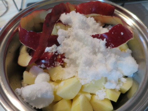 スーパーの青果コーナーに、美味しそうなリンゴが並び始めると・・アップルパイを作りたくなる季節だなあ~~( ̄¬ ̄*)というわけで、昨日。娘が帰ってきたので、今年初のアップルパイを作ろうと、紅玉(大きめ)を見つけて、買ってきました^^今日は台風の影響で、朝から風雨が強くて、どこへも行けないので、ちょうどよかったのであります^^紅玉は、赤い皮の色がきれいに出るので、剥いた皮も一緒に入れて、お砂糖で煮ます。 ほんのりローズ色なリンゴ(*´▽`*)(ちょっと煮すぎ(笑))パイシートを使って、お手軽に~♪久々に作ったら、上にのせるパイの編み方を間違えてしまった(^_^;)なんかヘン(笑)でも、さっくり甘酸っぱいアップルパイができました みんなで食べて、残ったのを、娘が持って帰りました。昨夜、↑“昨夜、” と書いたあと、別のことをしてたら、何を書くつもりだったのか、忘れてしまいました( ̄∇ ̄;)なので、これで終わり(笑)うーーん。“昨夜、” って、なんだったんだろう・・???
